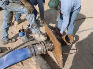 The pump is started and the water flows at 540gpm. An added bonus for residents living close by was that there was now no noise caused by the vibrating rigid column. Being flexible, the Boreline absorbs the sound very well.