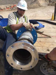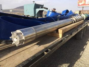 This mine installed a 1300gpm submersible pump at 300ft. The water is very saline and corrodes the steel pipe very quickly.